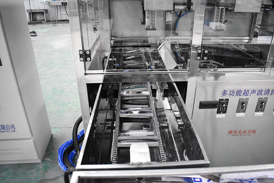 The equipment has automatic loading and unloading and corner system, ultrasonic cleaning system, automatic throwing, automatic overflow and oil separation device, spray system, automatic high-pressure water cutting system, and automatic drying system. The robot automatic conveying system uses high-precision linear guide rails with high-precision position detection sensors, and the robot can accurately grasp and place the workpiece. The automatic feeding and discharging and automatic heating system completely realizes unmanned intervention and automatic operation, which greatly reduces the labor intensity of workers. The advanced mist treatment system can condense and return the mist generated during cleaning, and the air will be discharged after being filtered and adsorbed by activated carbon.